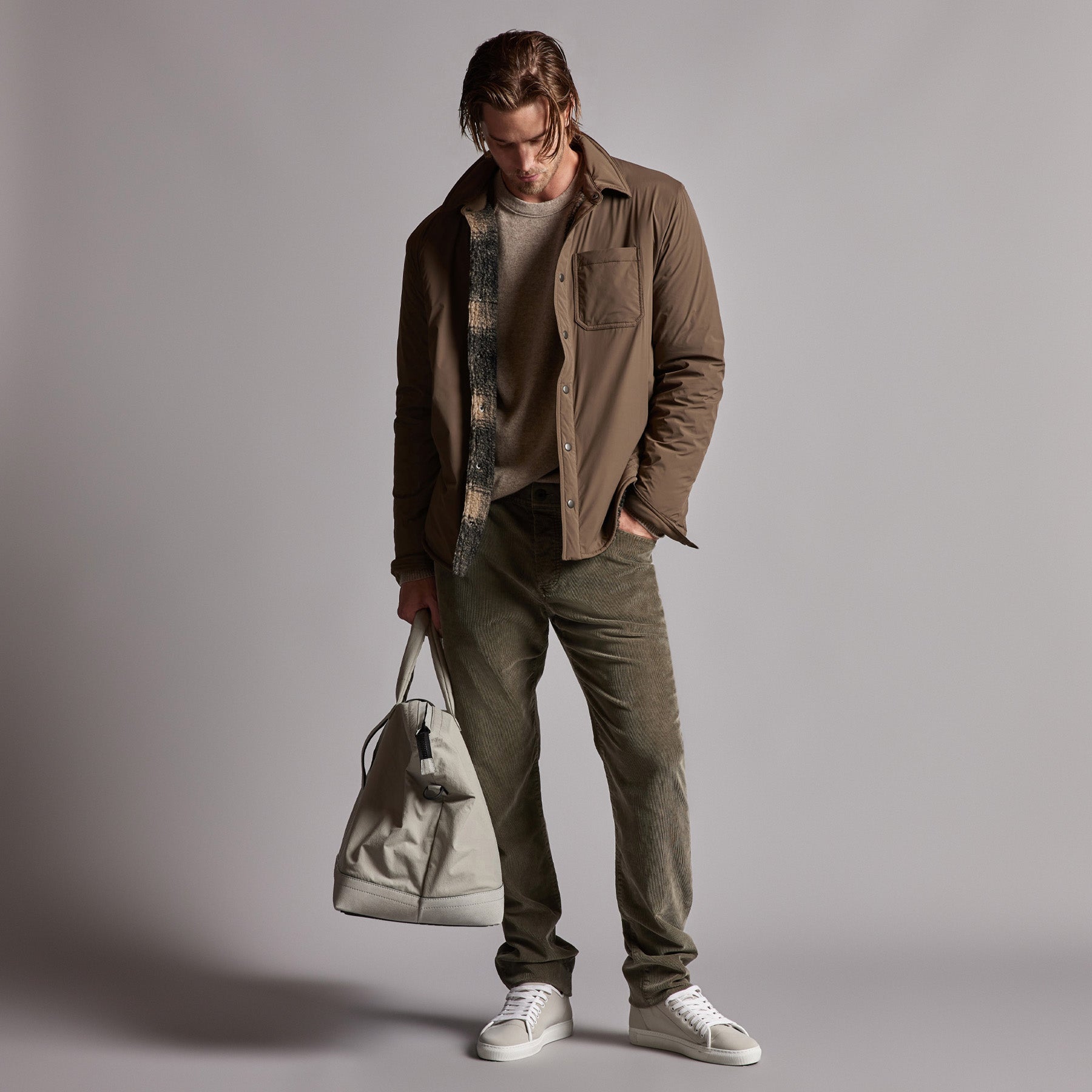 Our Fine Wale Cord 5 Pocket Pant is made from French Fabric that has stretch for comfort and every day wear. Style details include tack buttons, belt loops, and functional fly. Slim fit.