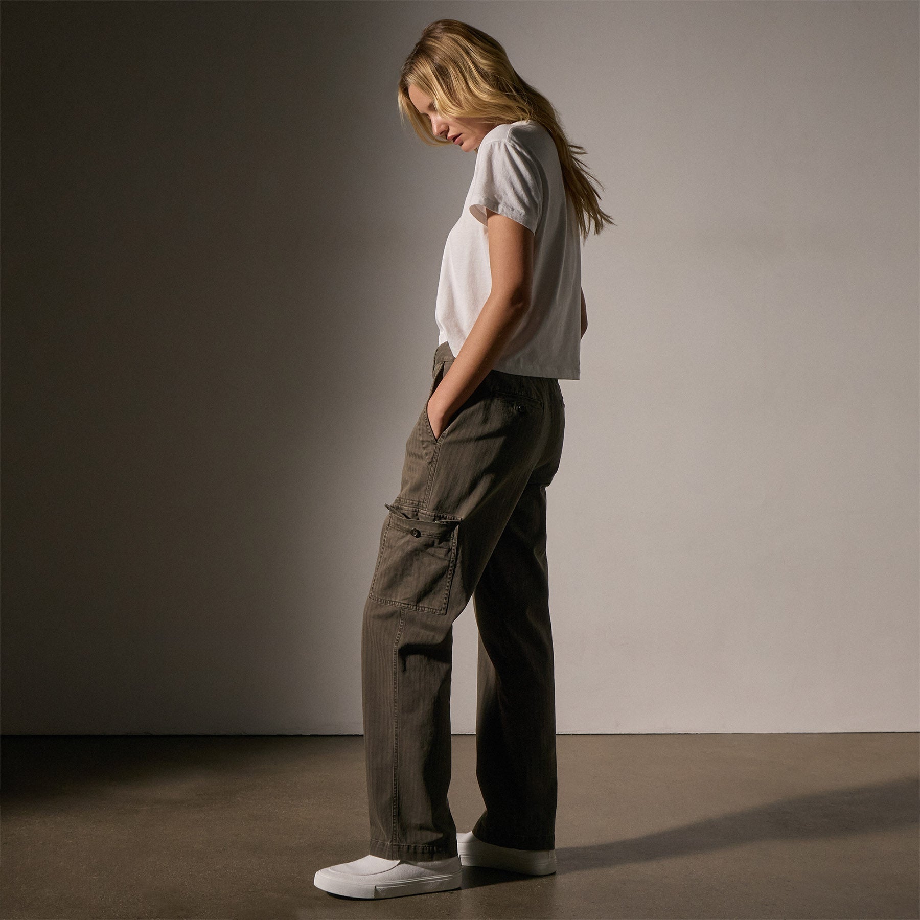Our Stretch Herringbone Twill Utility Pant is crafted from premium Italian brushed herringbone fabric. The relaxed, oversized fit is complemented by a functional fly with an elastic back, ensuring a perfect fit. Practical side cargo pockets add a utilitarian edge, while the built-in stretch provides ease of movement and all-day comfort.