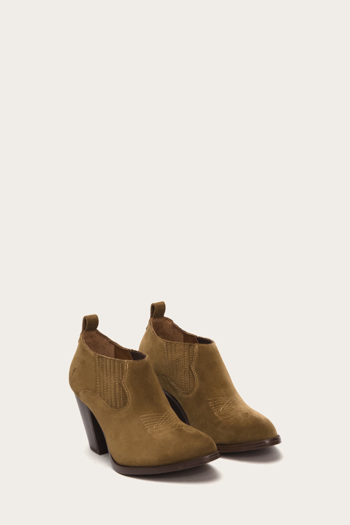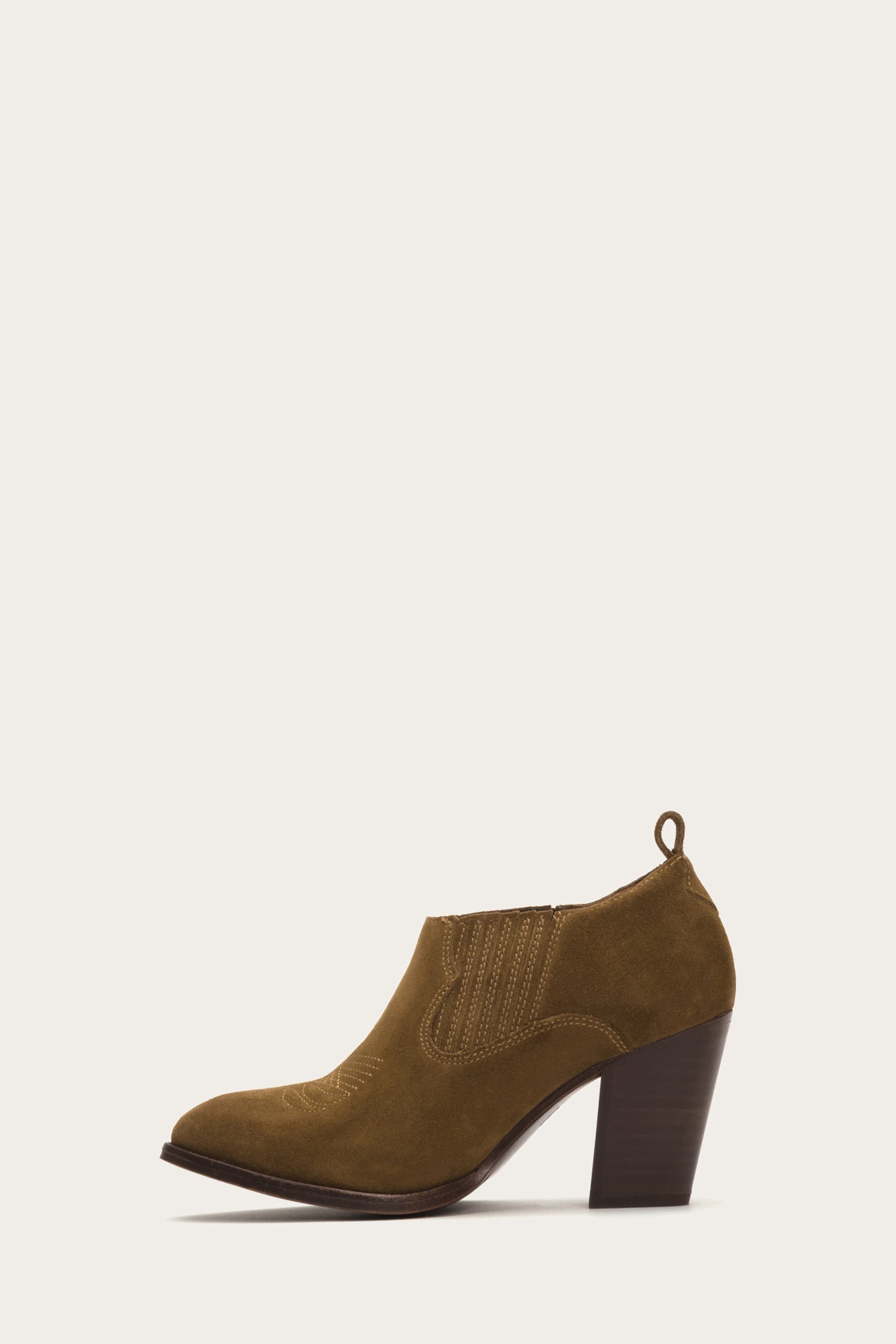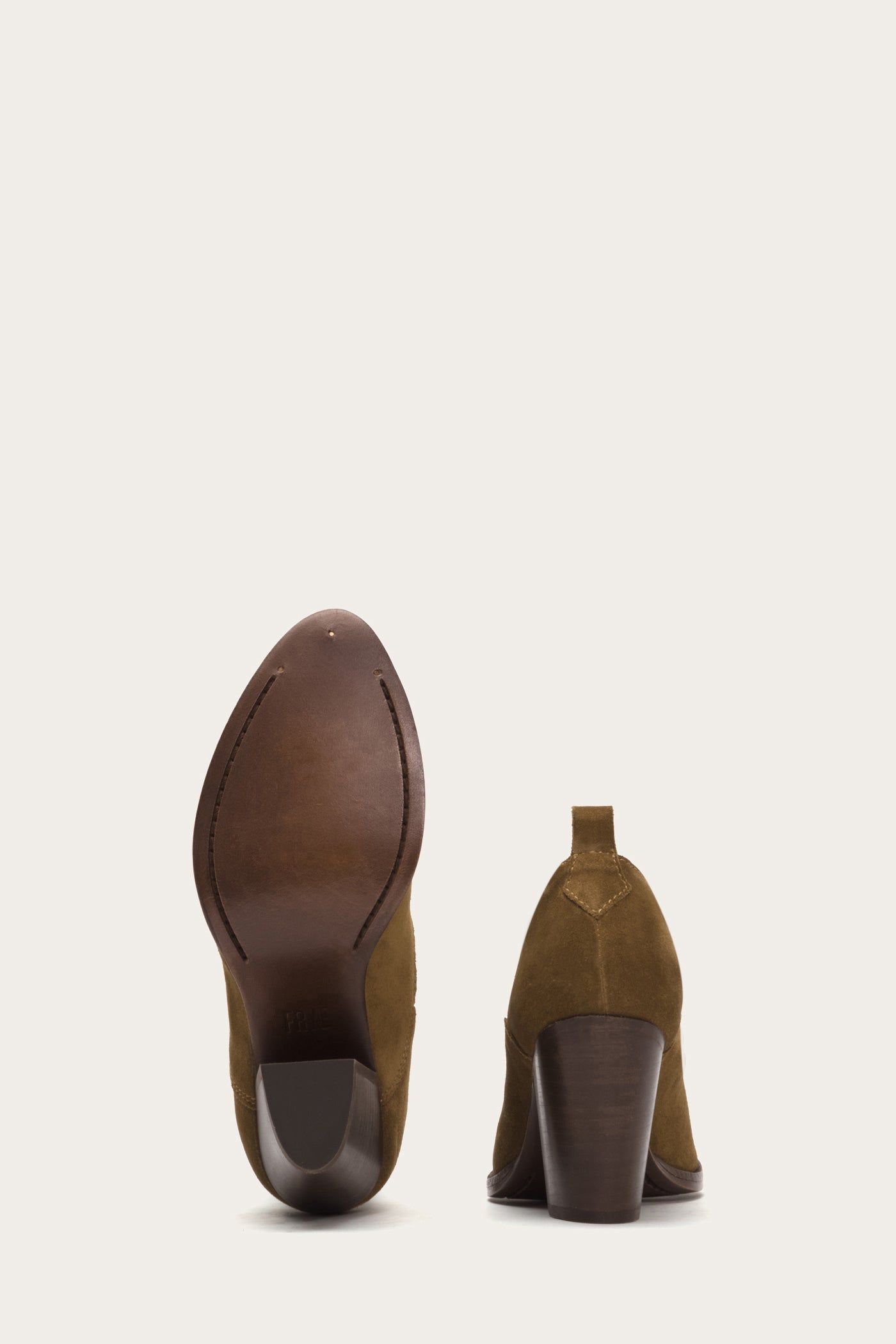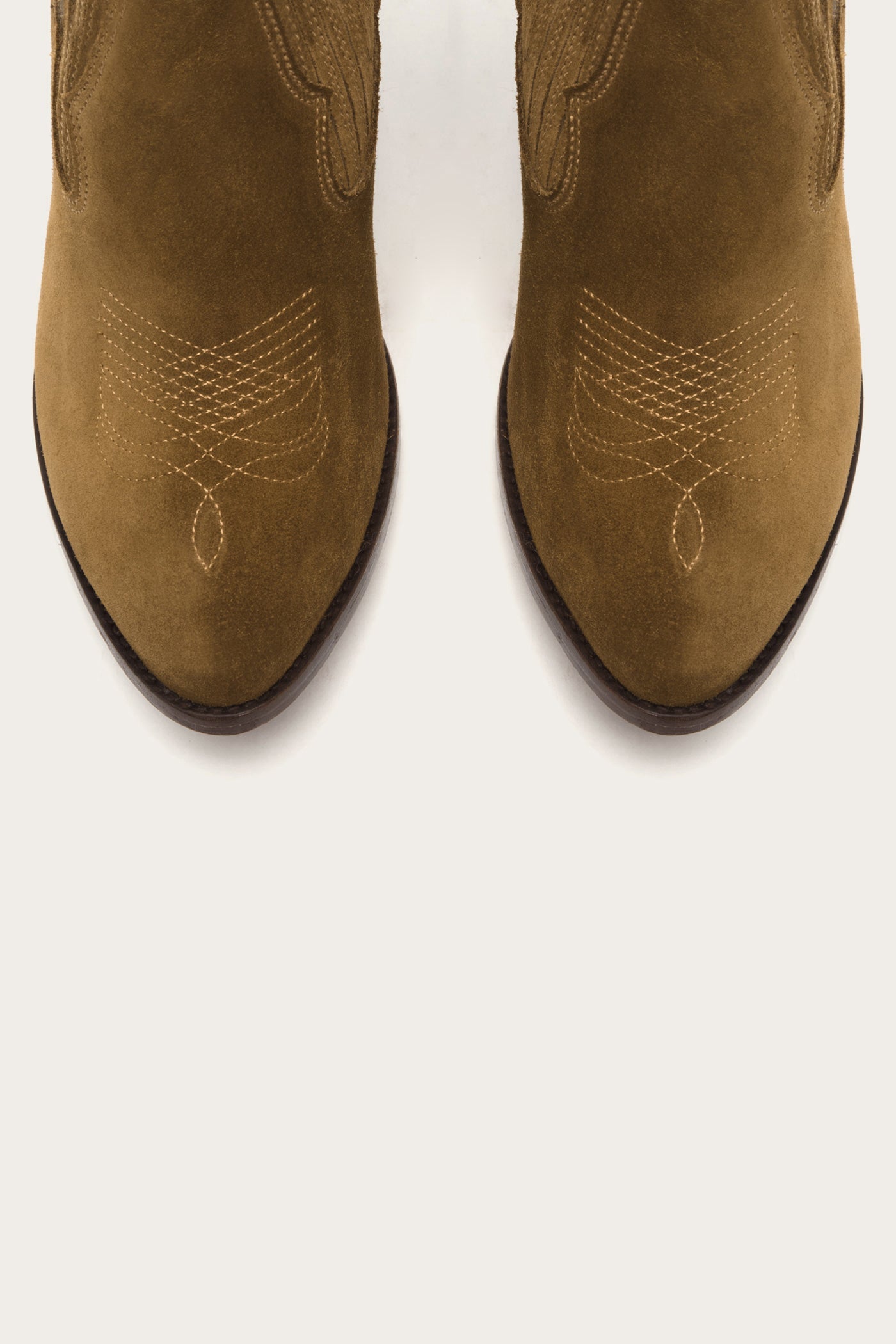 The Ilana group introduces a new shootie silhouette for fall. Handcrafted from Italian oiled suede, this is a western-minded shoe with a refined point of view. Beautiful stitching and a high stacked heel take this classic cowboy look to new heights. - Italian Leather- Leather lined- Leather outsole- 2 3/4 shaft height- 3 1/4 heel height