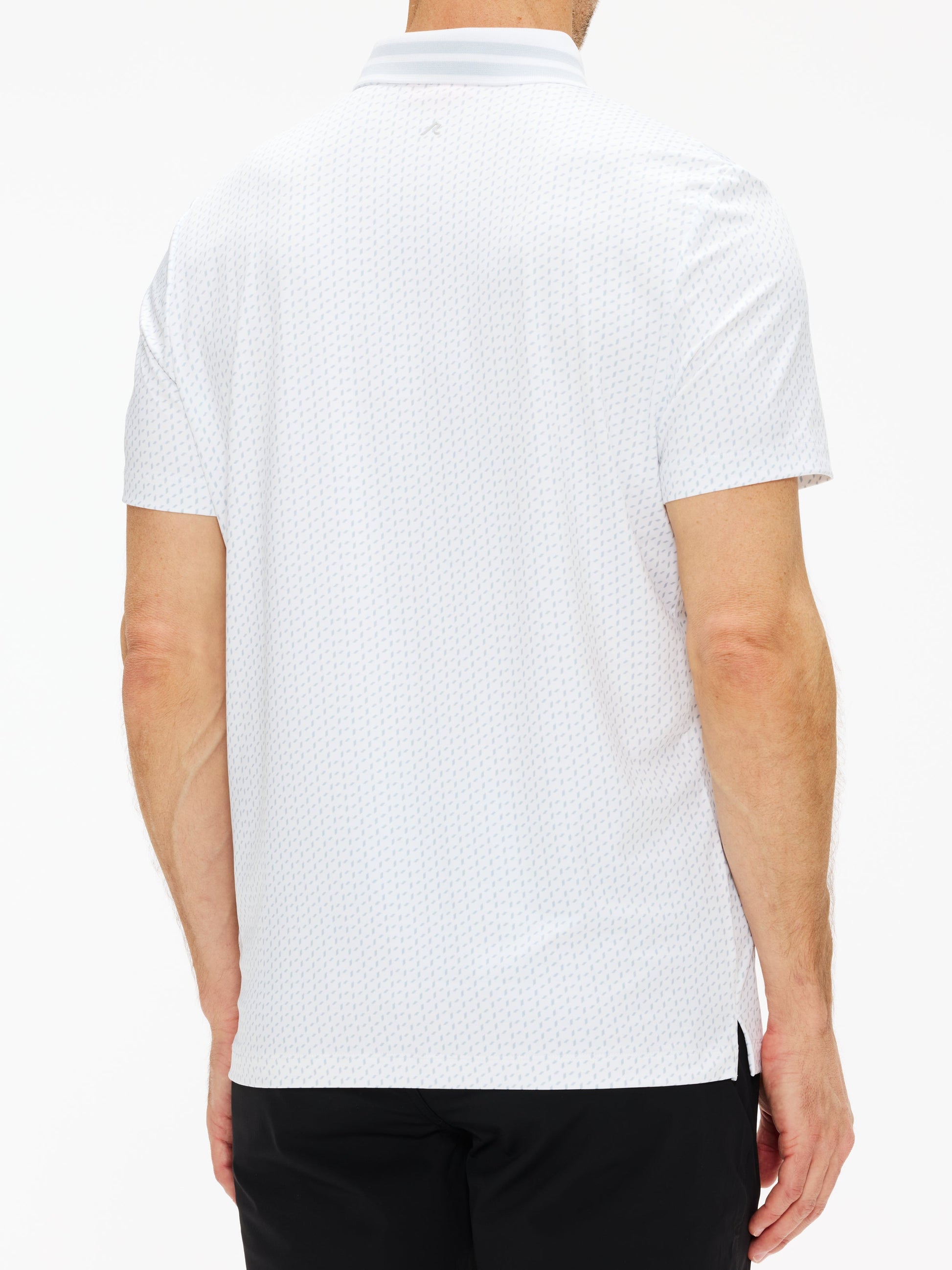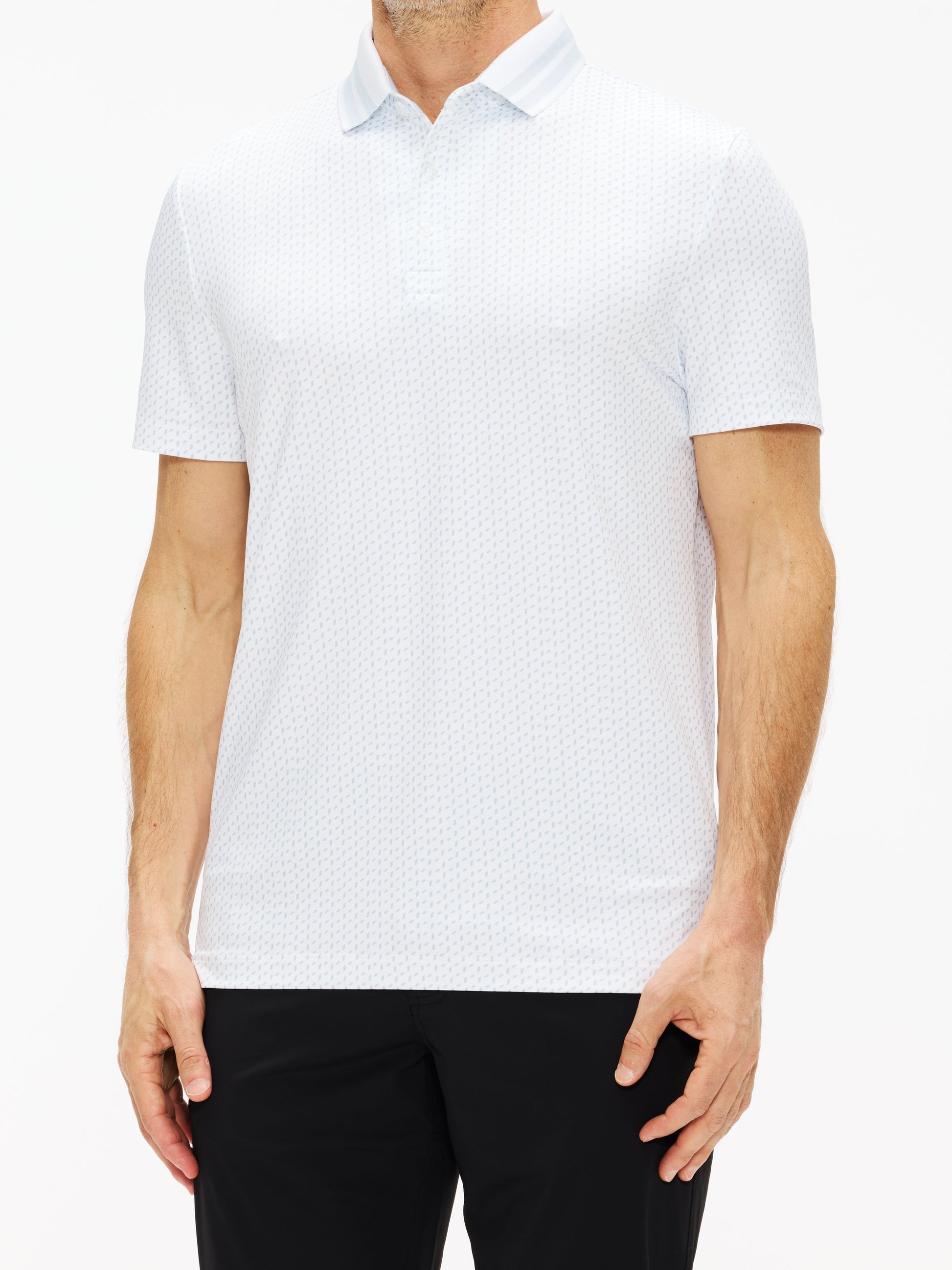 The Pascal Polo features a geometric pattern complemented by a solid toned placket and collar with a contrasting dual stripe.