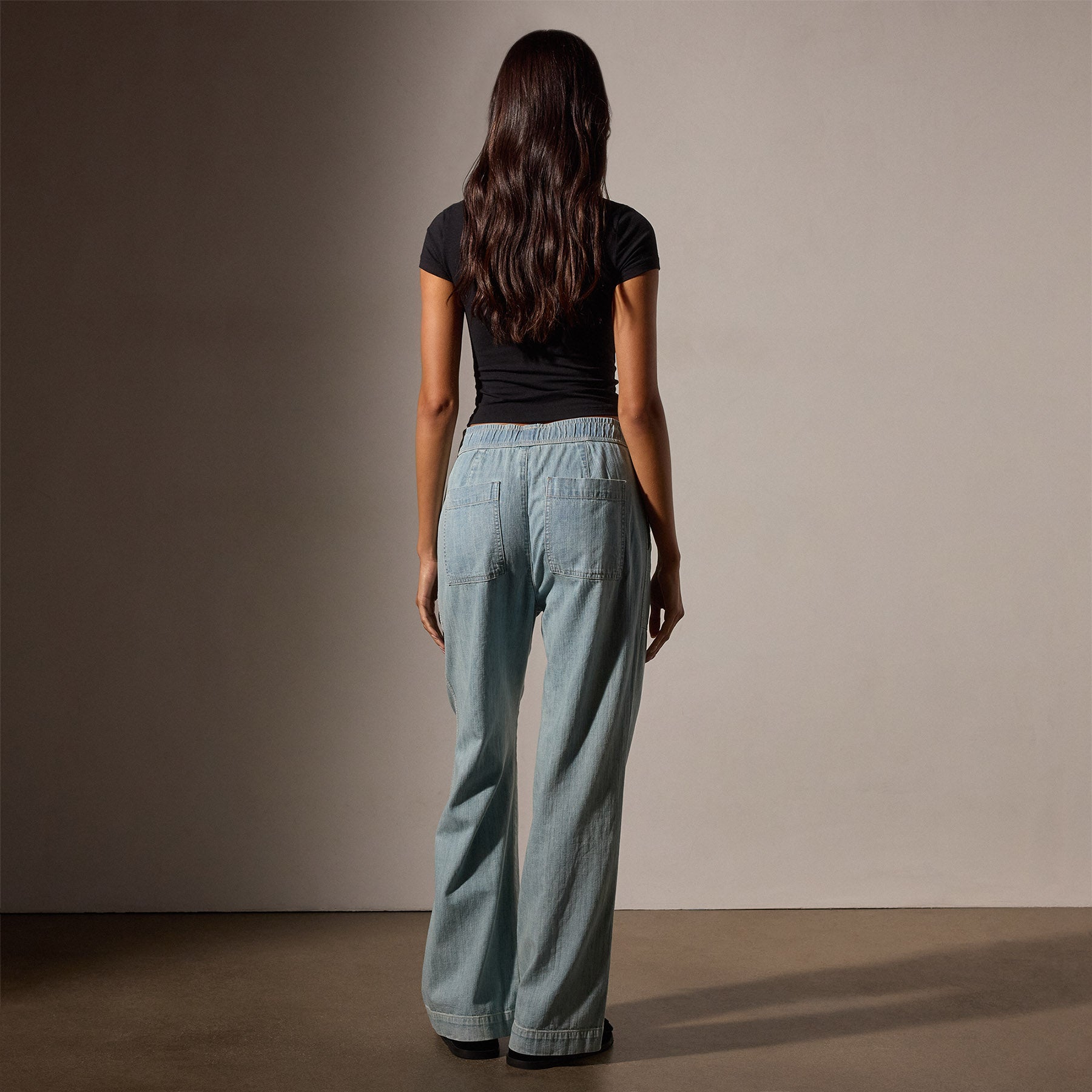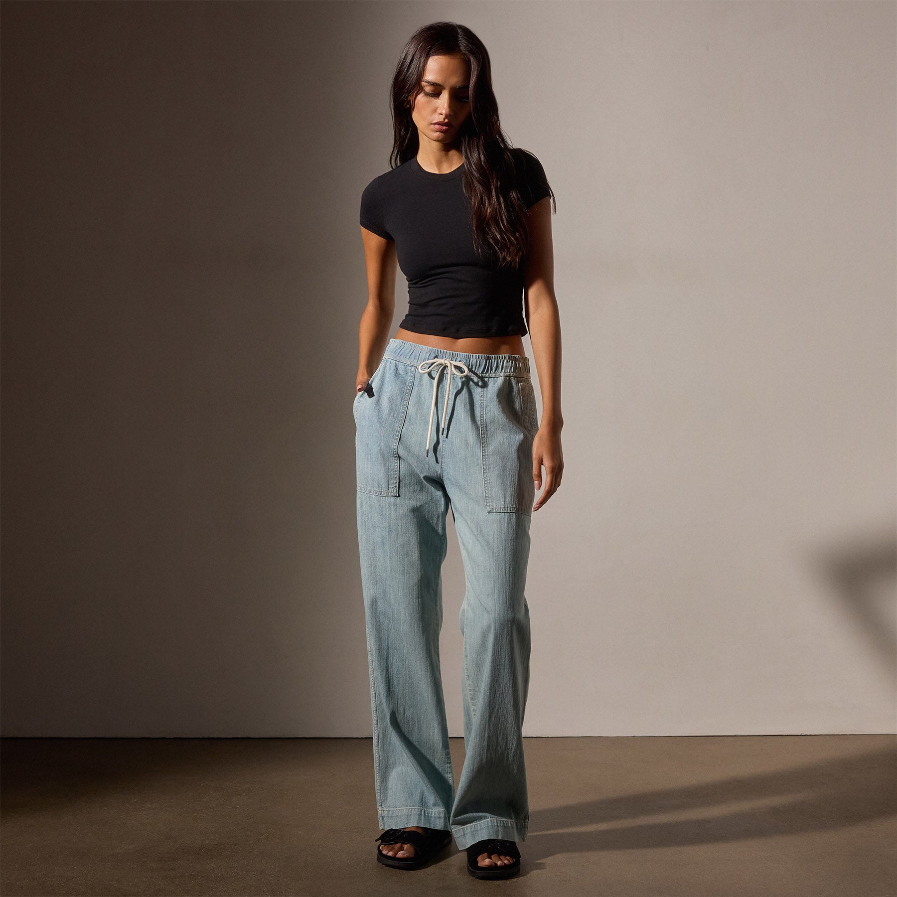 Wide Leg Pull On Denim Pant - Bleach Wash